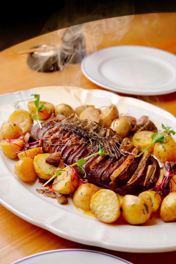 62€(environ 500g), servi avec pommes grenaille forestières Généreux et fondant ! Un grand classique révisité en version XXL