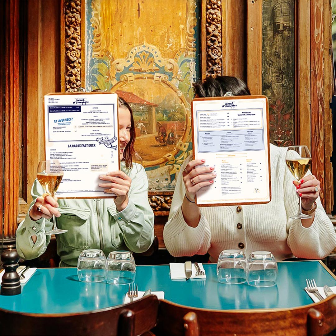 Gourmet dishes, free-range duck, artisanal champagne, and revisited French pastries: our menu is designed to delight every palate. Take a look and prepare yourself for a delicious experience.